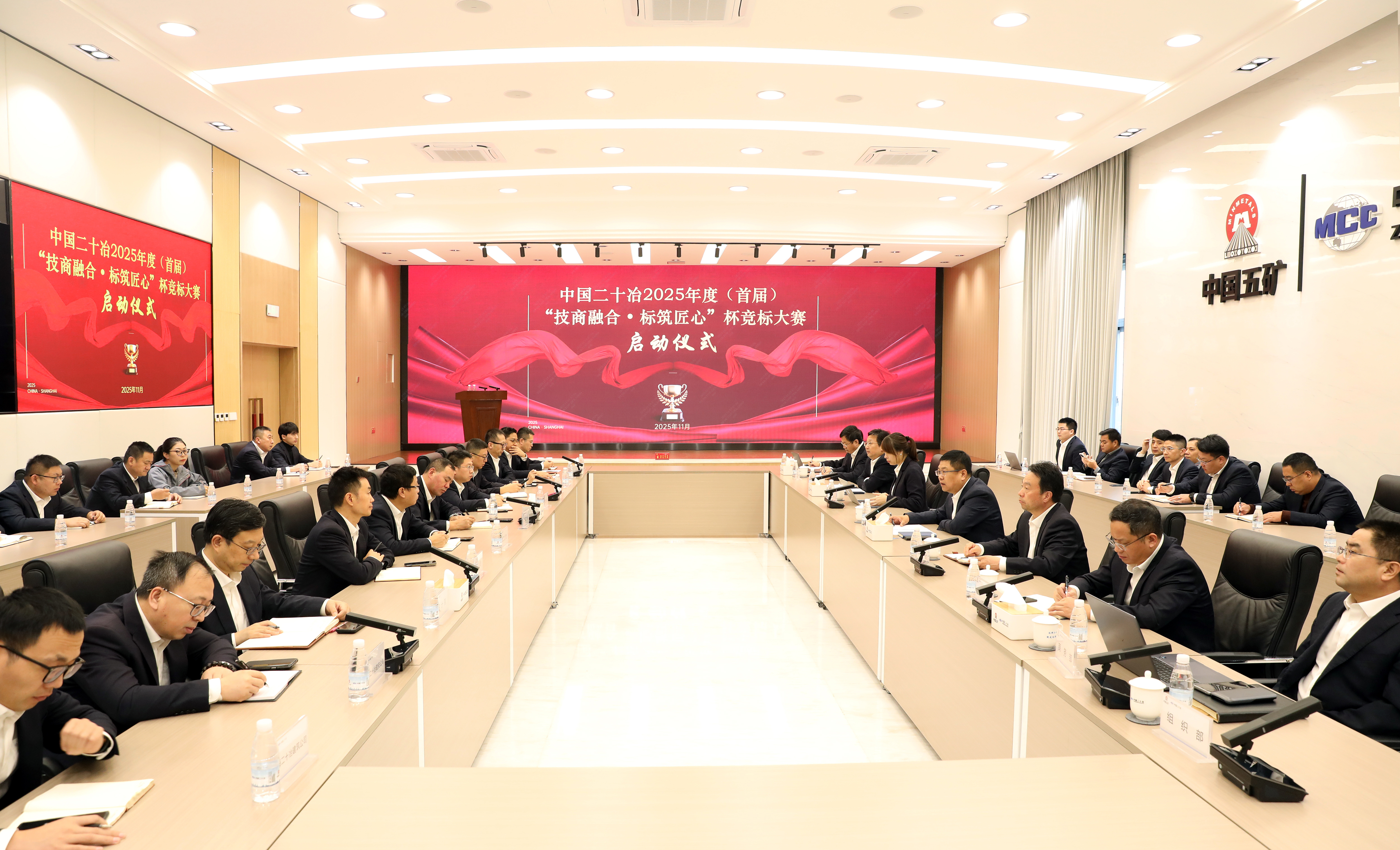 11月15日,中國二十冶2025年度(首屆)“技商融合·標(biāo)筑匠心”杯競標(biāo)大賽舉行啟動(dòng)儀式。公司副總經(jīng)理馮志峰出席儀式并致辭,公司相關(guān)領(lǐng)導(dǎo)、部門負(fù)責(zé)人及各單位營銷骨干通過現(xiàn)場參會(huì)和視頻方式見證大賽啟幕。